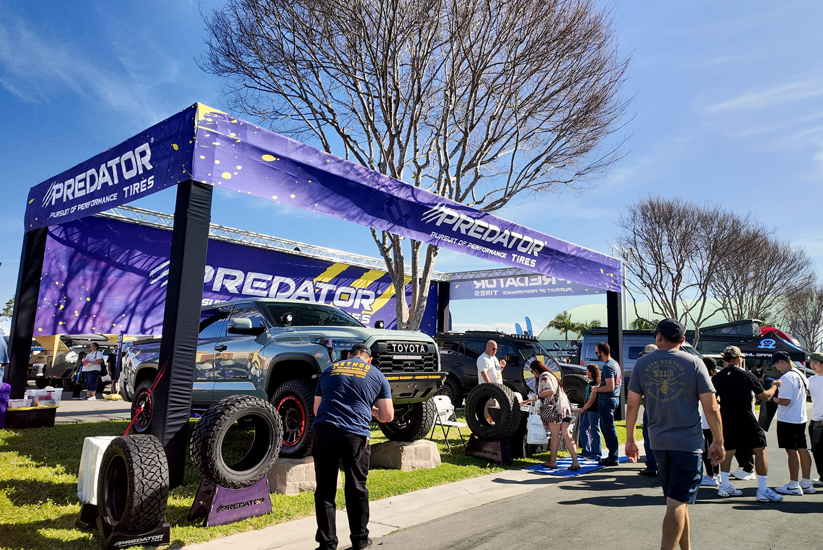 Predator Tires took over Overland Expo SoCal in Costa Mesa on March 14–15 with killer rigs, fresh gear, and non-stop crowds at the booth. Jeremy Jackson’s (@jeremyjackson) Toyota Land Cruiser on New Mutant X-RTs and Derek’s (@tundratrd22) Toyota Tundra on New Mutant RT Trails showed off what our tire lineup can really do, from aggressive sidewall lugs to hybrid tread designs built for daily driving and weekend adventure. Whatever off-road tire needs you have, Predator Tires has you covered with proven performance on and off the road. We handed out a ton of free Predator Tires merch, connected with fellow overlanders, and captured all the action in this full weekend recap from Overland Expo SoCal in Costa Mesa, CA.